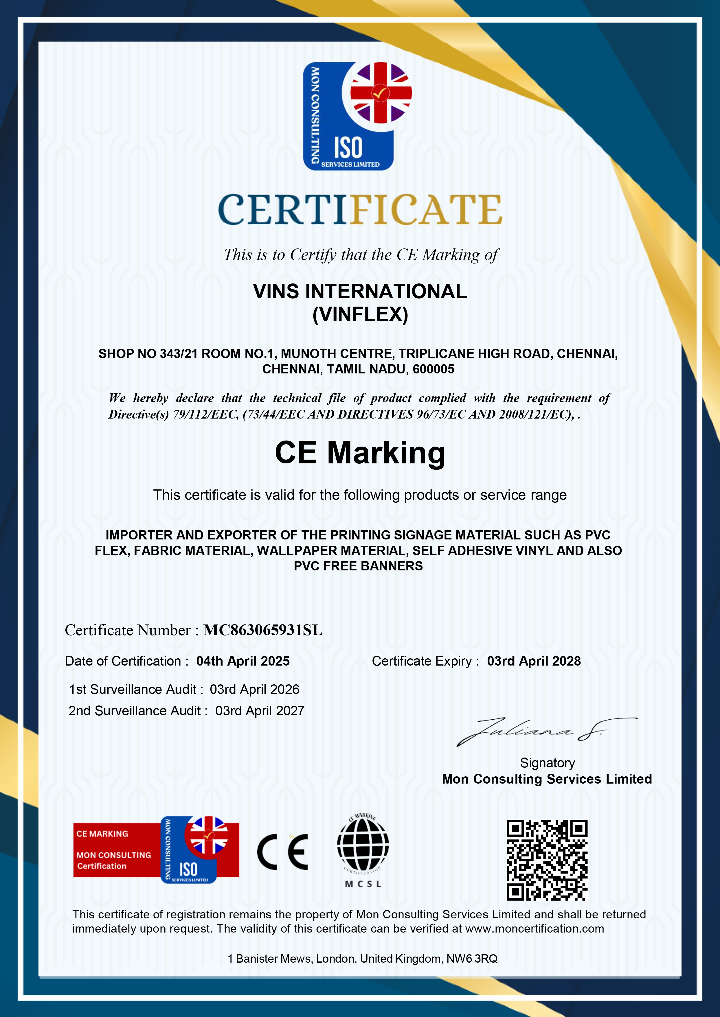 VinFlex VWB 9G Frontlit is a high-performance frontlit banner material engineered for brilliant print quality and versatile usage. Designed specifically for digital printing professionals, VinFlex VWB 9G delivers rich, vibrant colors and crisp image reproduction across a range of applications. Its 9G (gsm) weight strikes the perfect balance between flexibility and durability, making it ideal for both indoor and outdoor displays. Whether you're printing promotional banners, hoardings, billboards, or event signage, this material ensures maximum visibility and long-lasting performance.